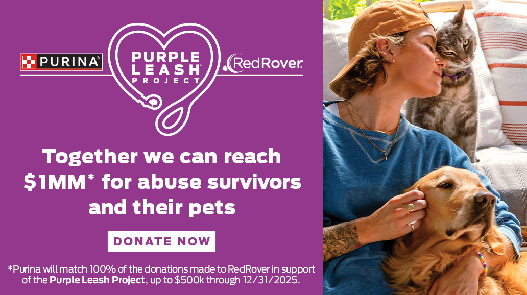 Show your support for domestic violence survivors and the pets they love. Post a picture of you and your pets wearing purple on social media, tag us @RedRoverOrg, and use the hashtag #PetsAreFamily. |